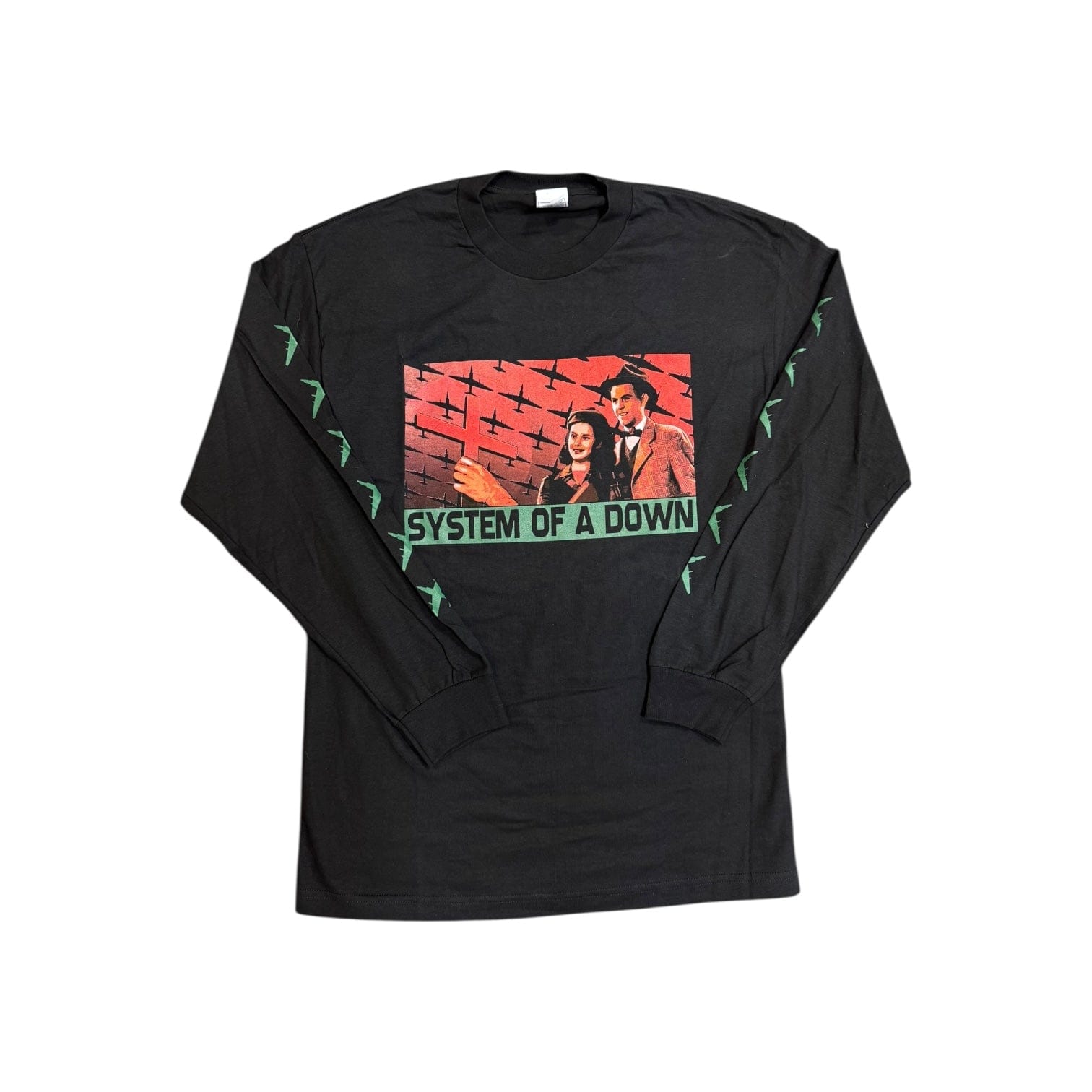 Vintage 1990s System Of A Down Propaganda Planes Photo Long Sleeve Tee Shirt Black Red Green