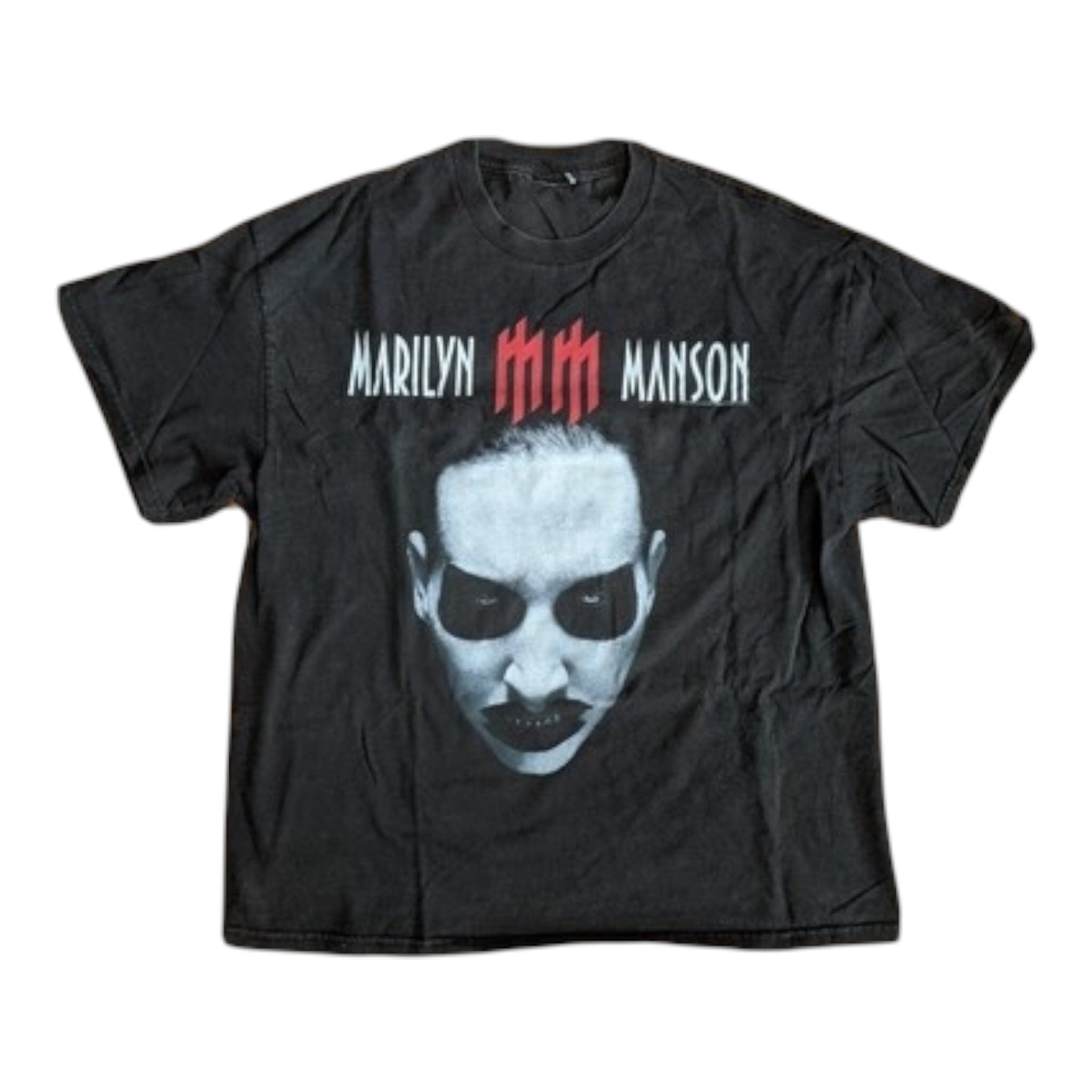 Vintage 2003 Marilyn Manson Rabble Babble Bitch Tour Photo Short Sleeve Tee Shirt Black Multi