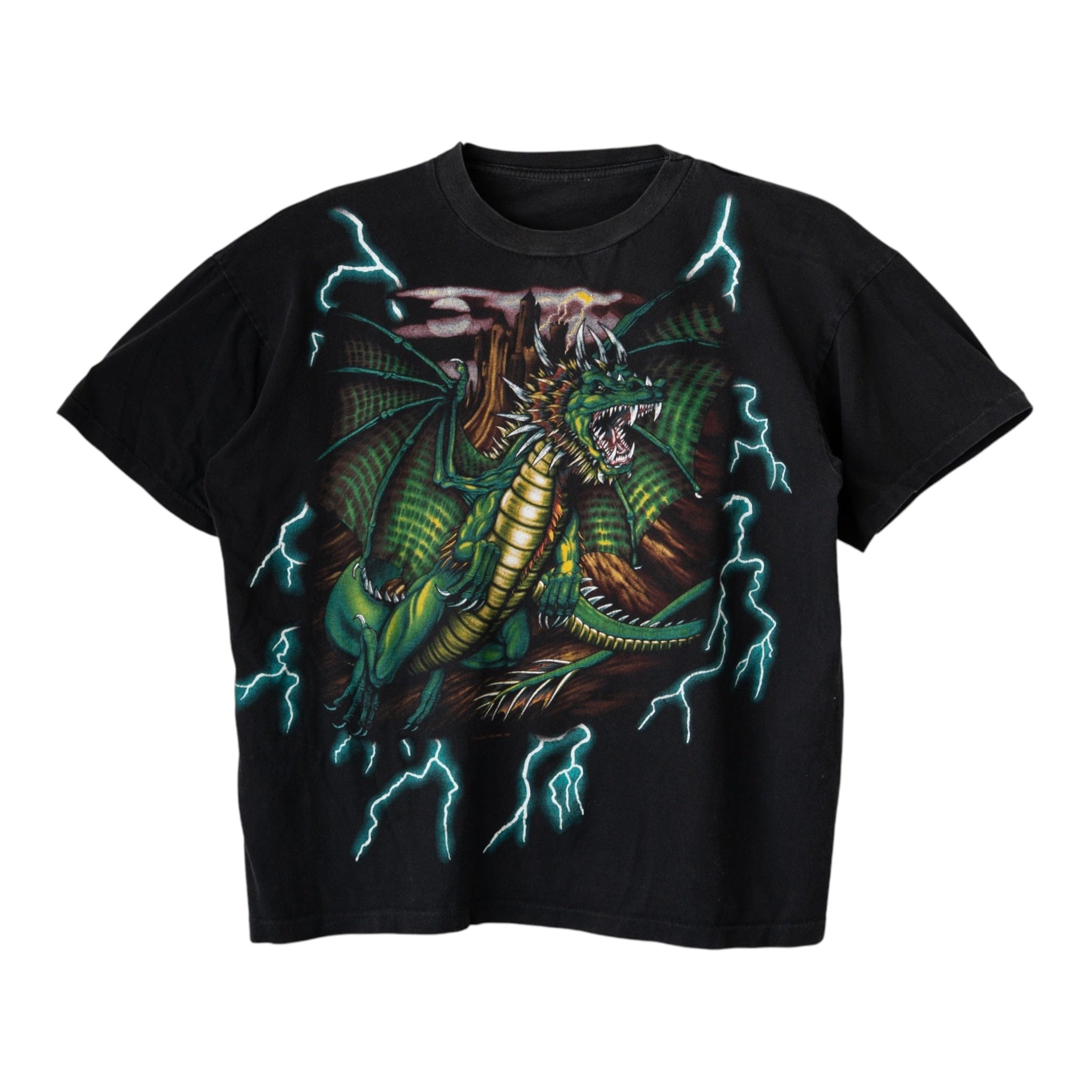 Vintage American Thunder Dragon Logo Short Sleeve Tee Shirt Black Multi