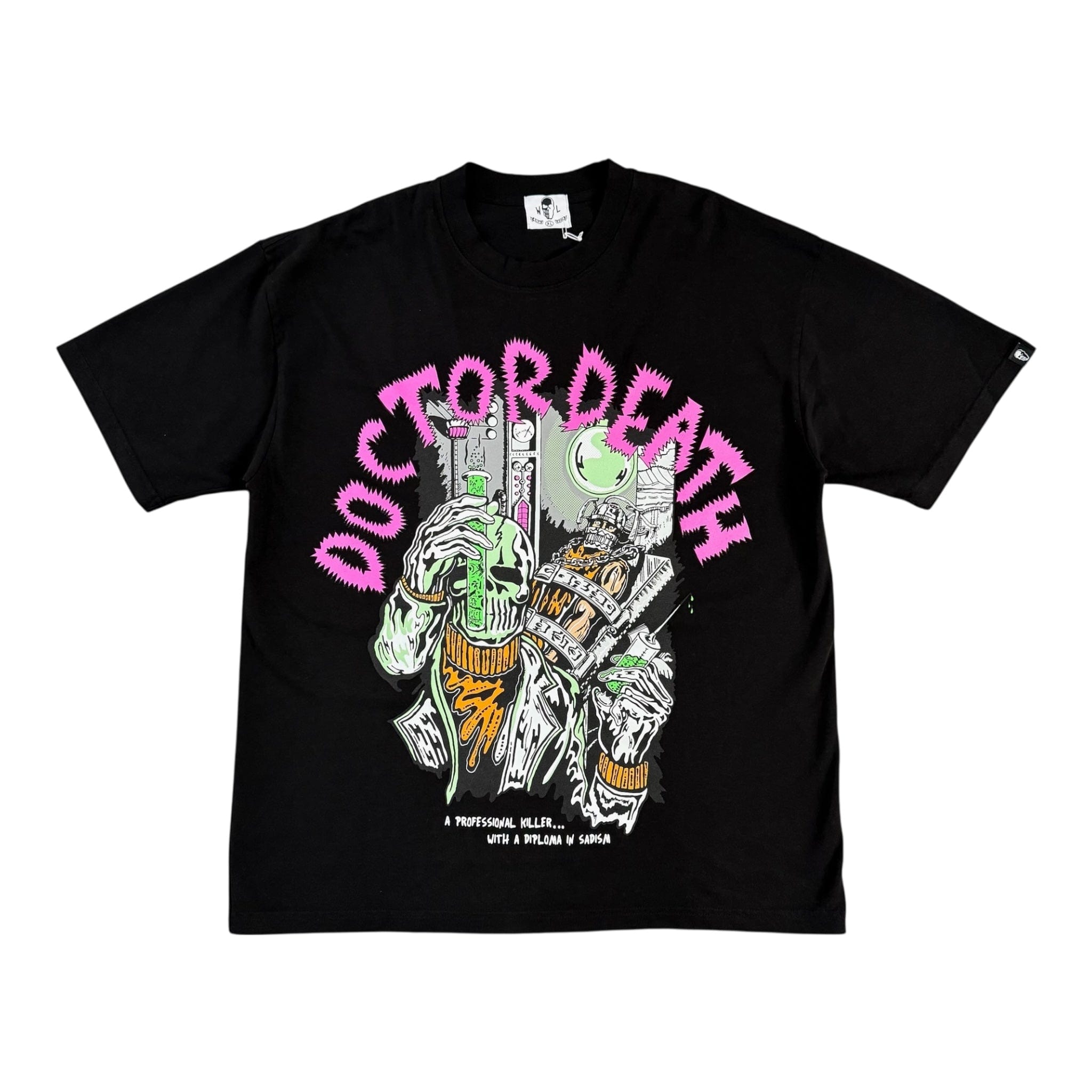 Warren Lotas Doctor Death Logo Short Sleeve Tee Shirt Black Pink Multi