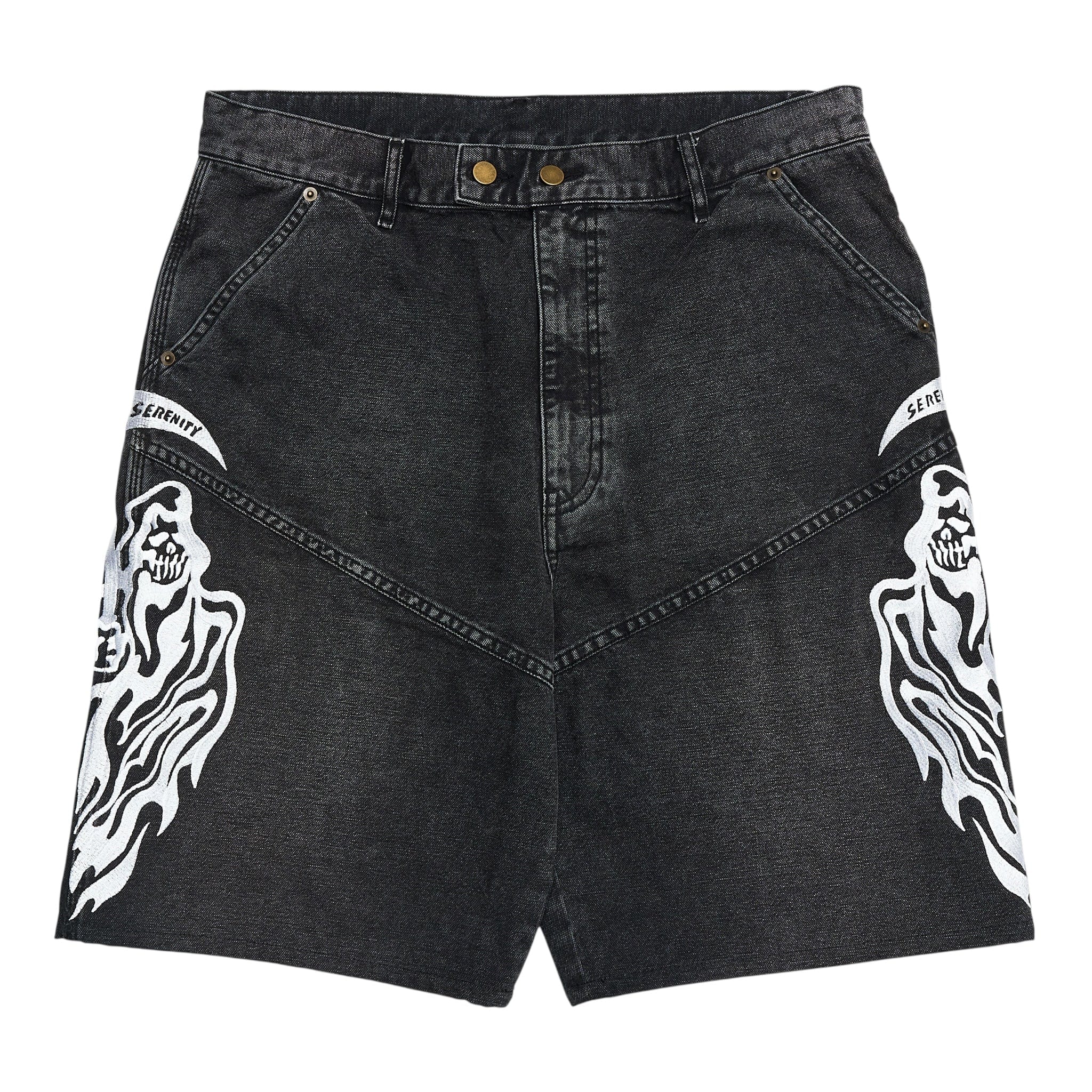 Warren Lotas Embroidered Reaper Logo Moto Denim Shorts Vintage Black White