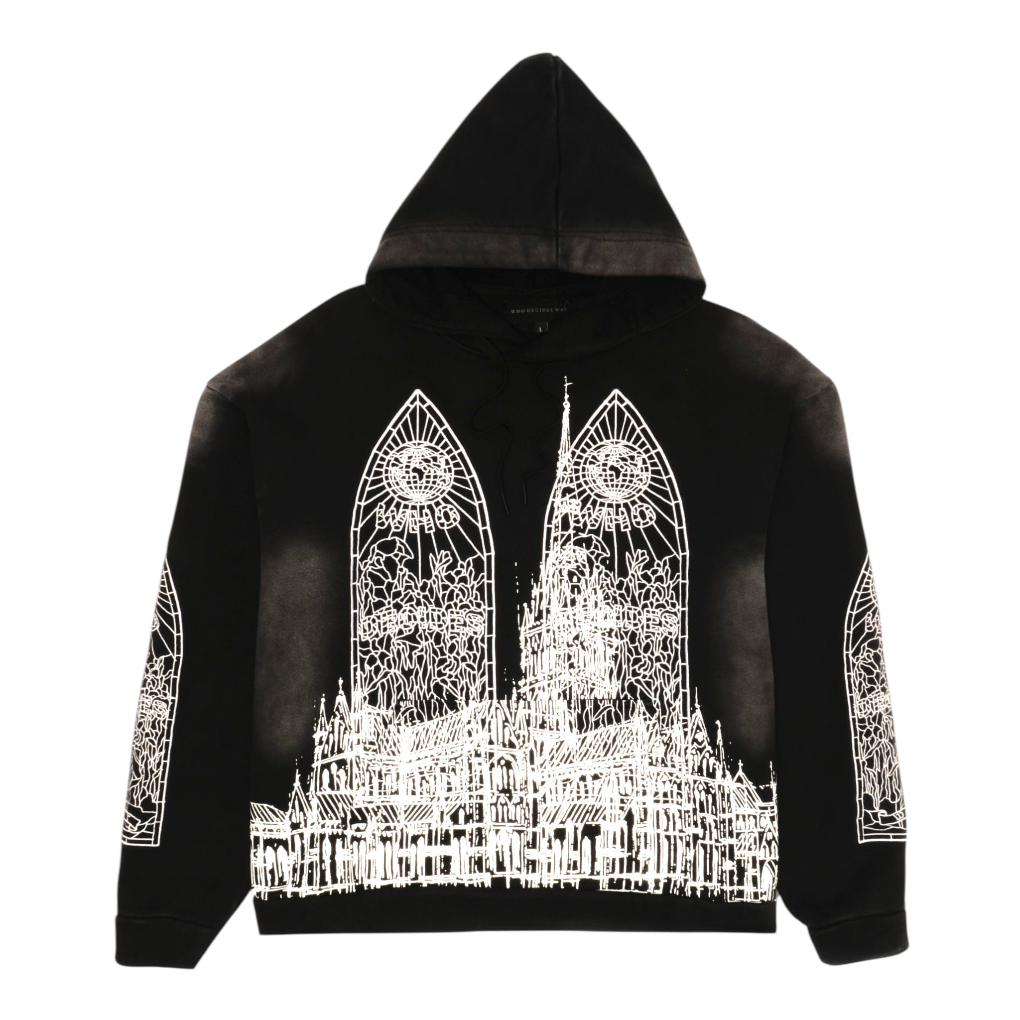 Who Decides War By MRDR BRVDO Cathedral Hooded Sweatshirt Black