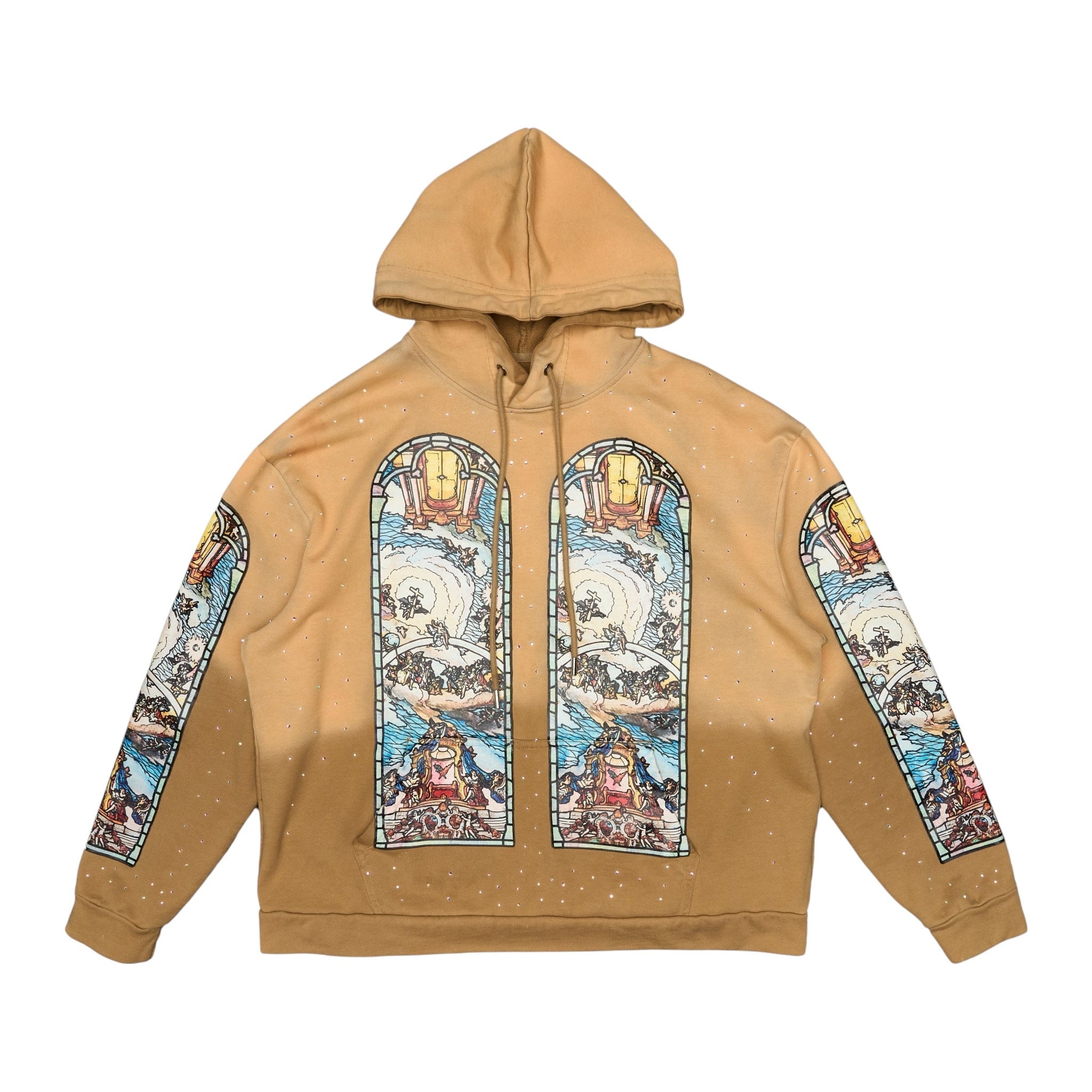 Who Decides War by MRDR BRVDO Chalice Stained Glass Hooded Sweatshirt Tan