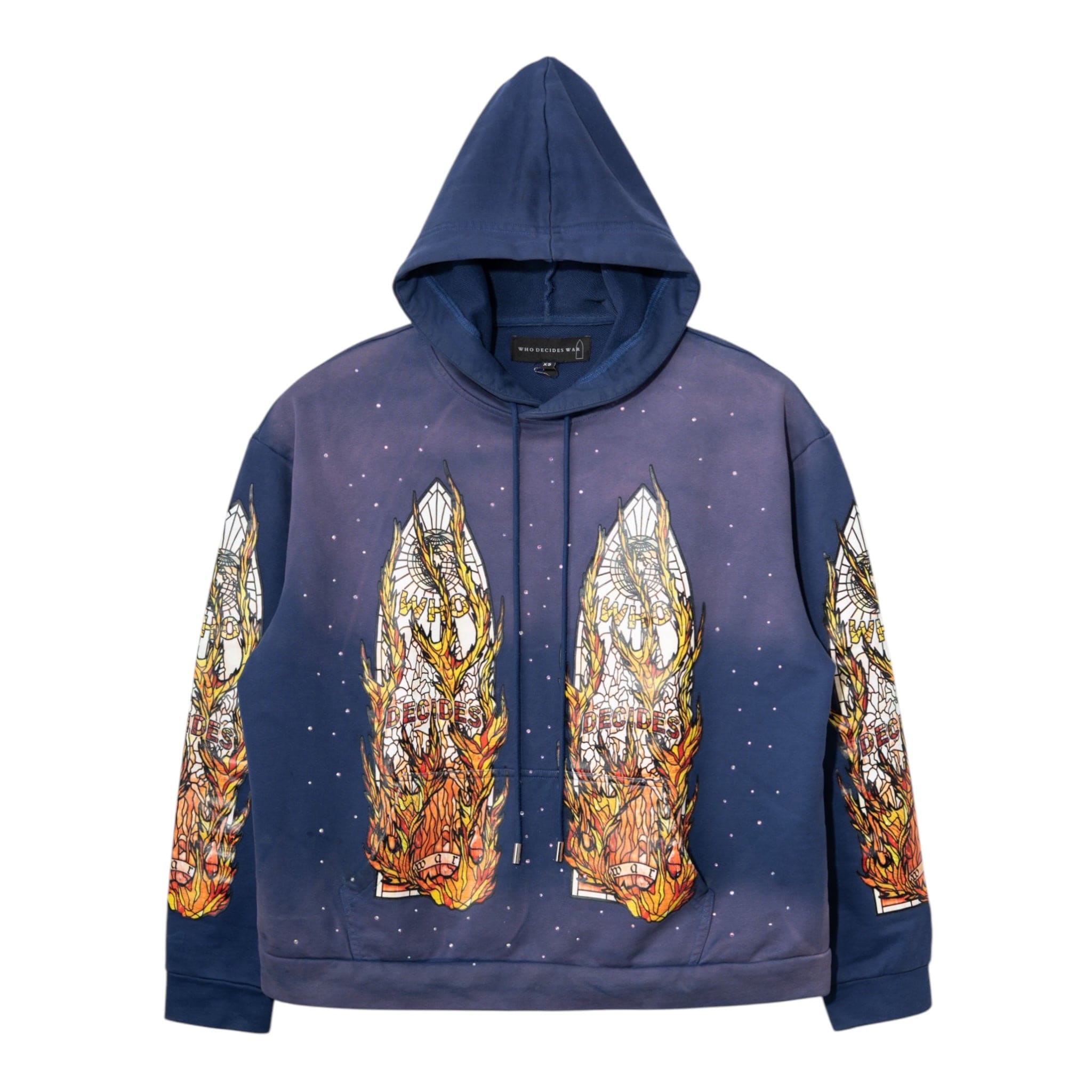 Who Decides War by MRDR BRVDO Flame Glass Logo Hooded Sweatshirt Indigo Multi