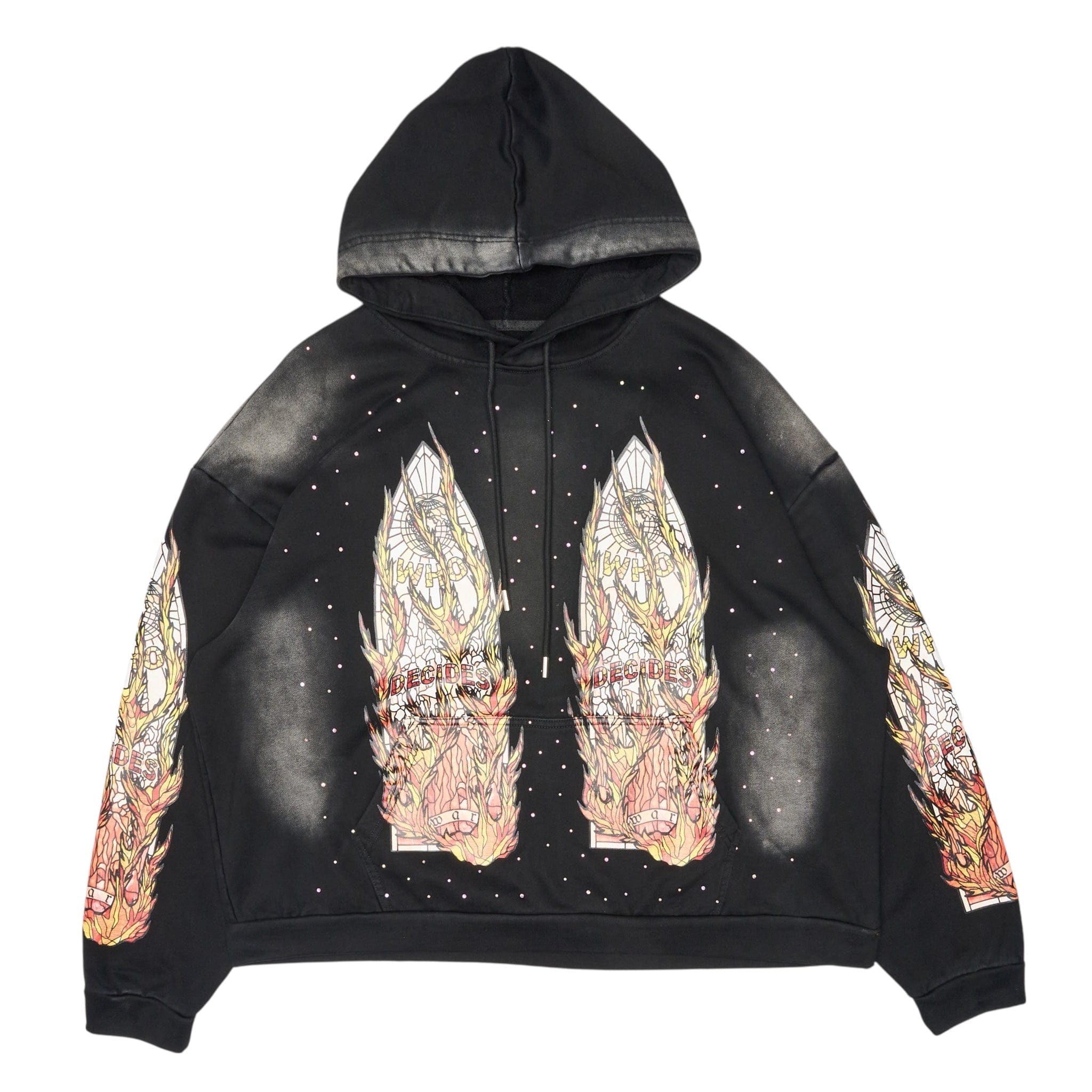 Who Decides War by MRDR BRVDO Flame Glass Logo Hooded Sweatshirt Black Multi