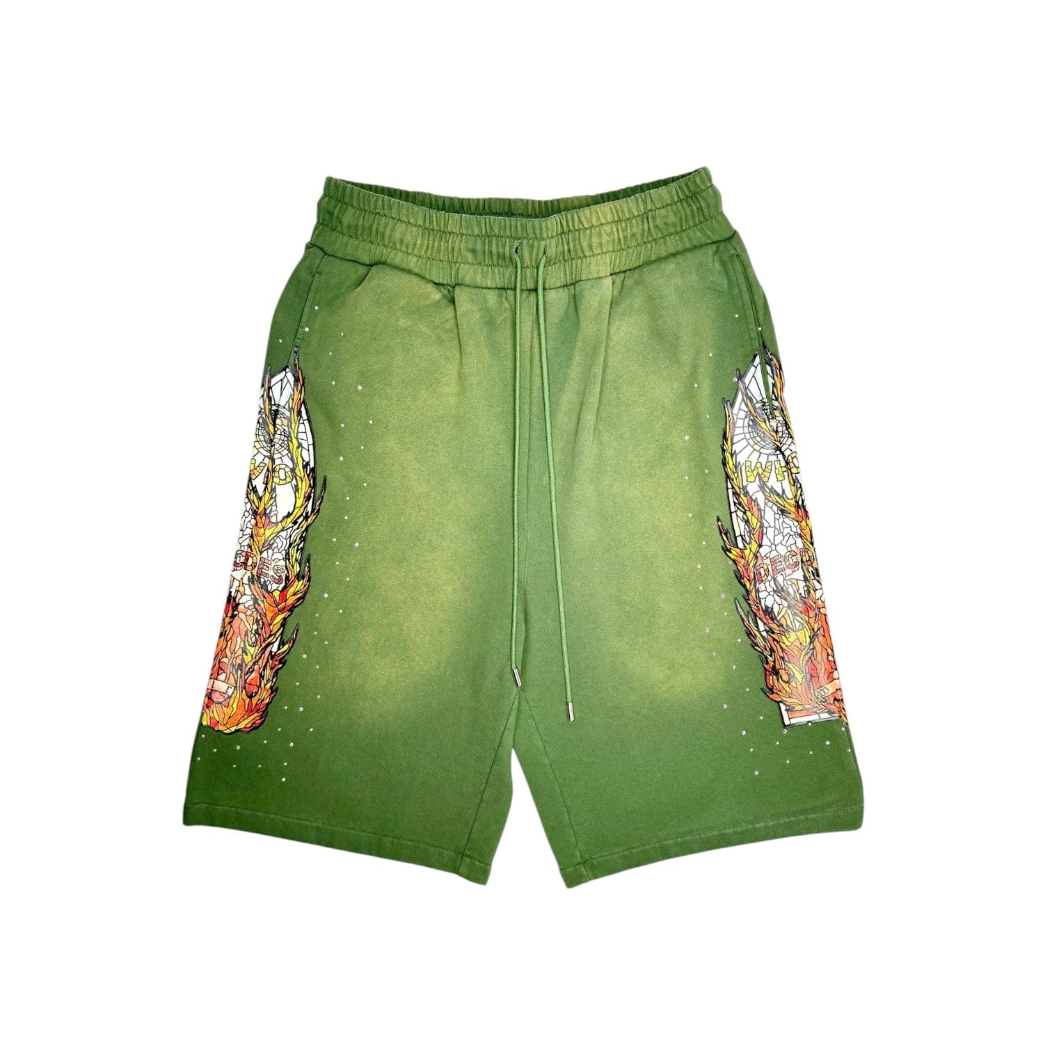 Who Decides War By MRDR BRVDO Flamed Glass Sweatshorts Green