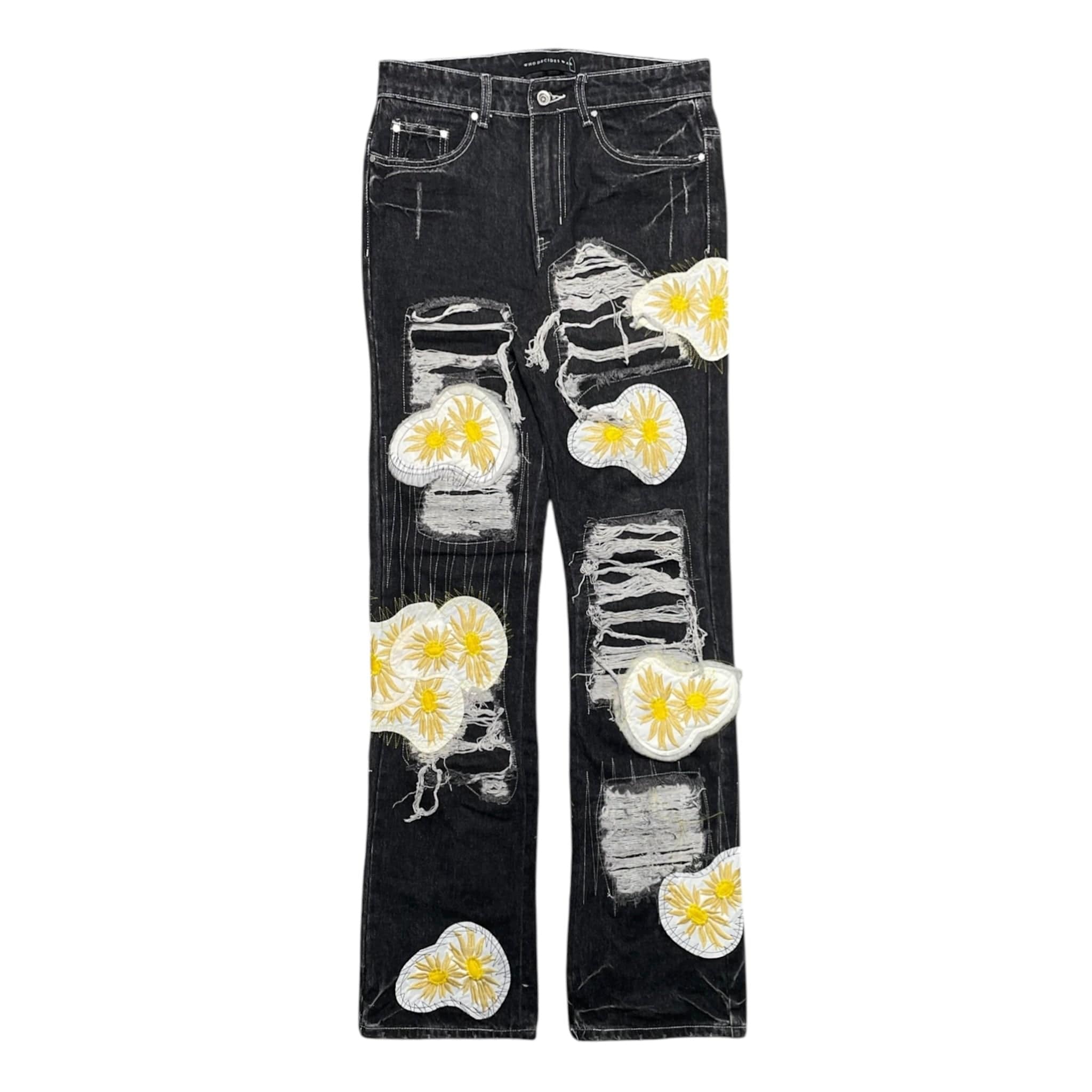 Who Decides War by MRDR BRVDO Flower Jeans Black Yellow
