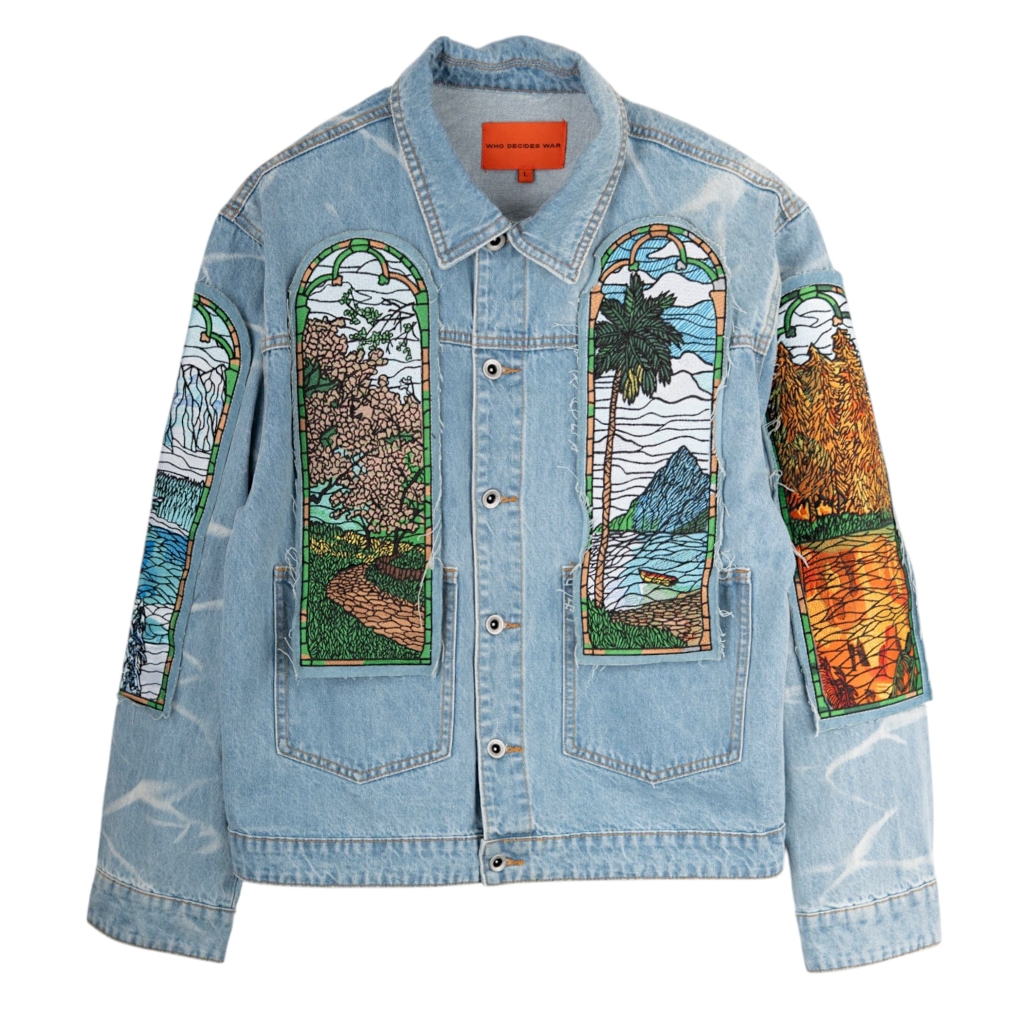 Who Decides War by MRDR BRVDO Four Season Denim Trucker Jacket Indigo Multi