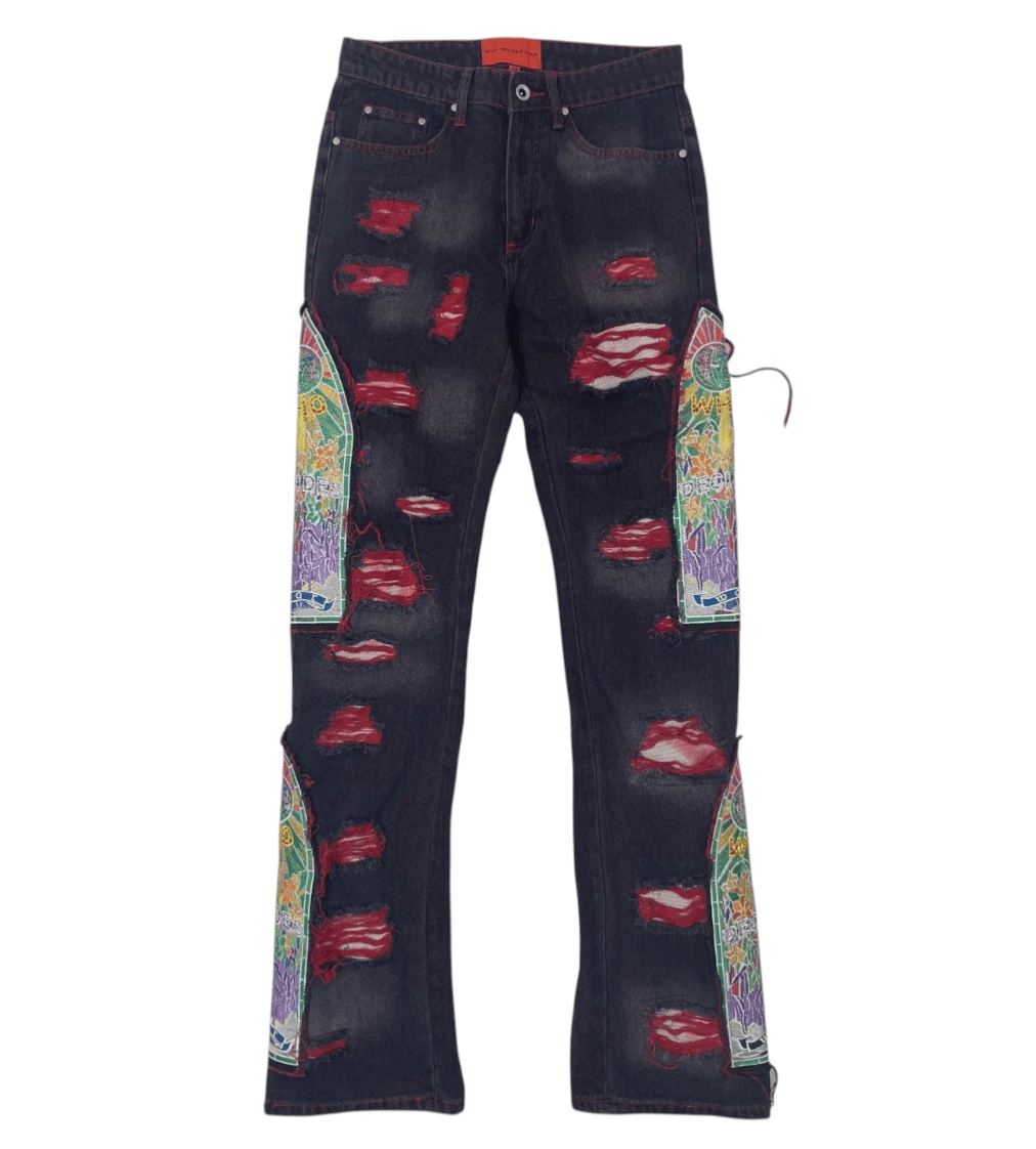Who Decides War by MRDR BRVDO Fusion Jeans Black Red Multi