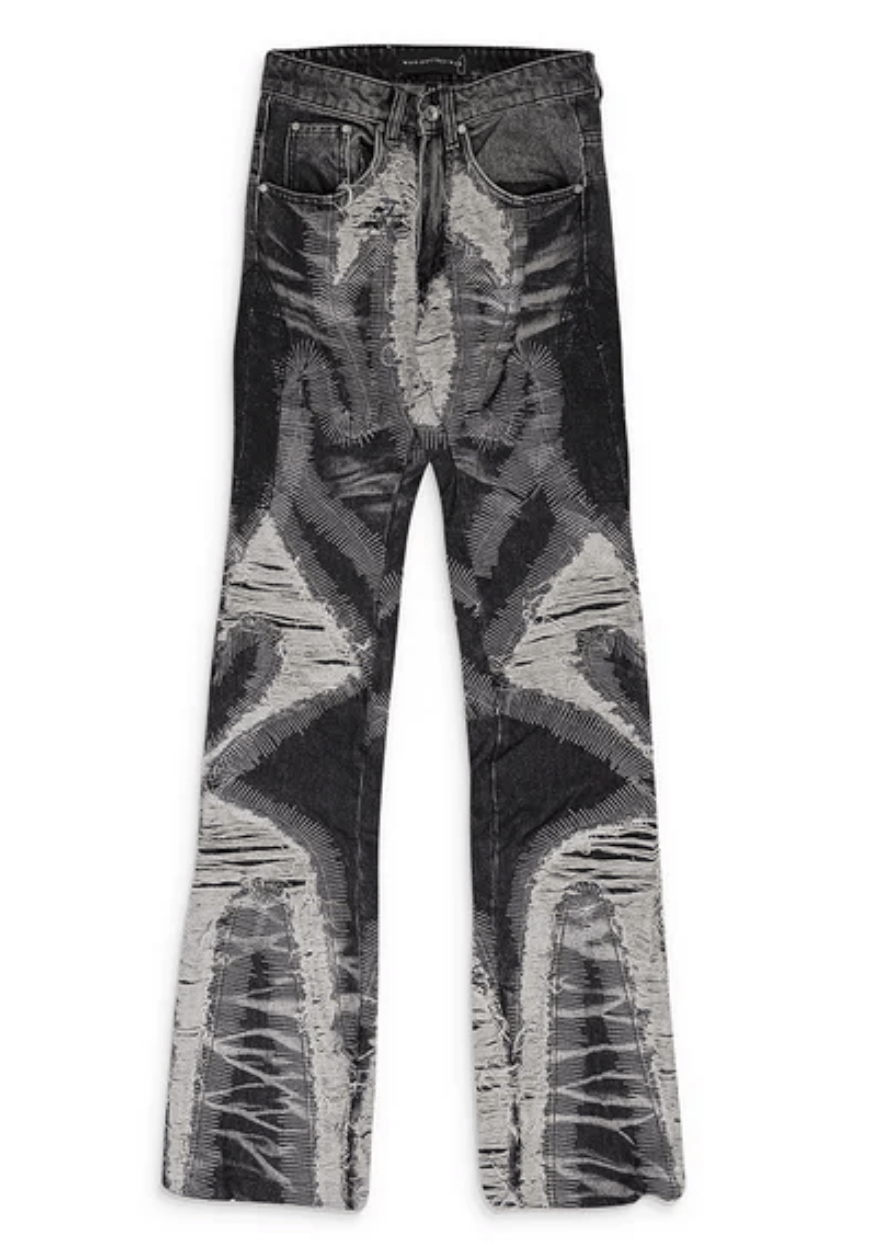 Who Decides War by MRDR BRVDO Path Jeans Black Grey Pre-Owned