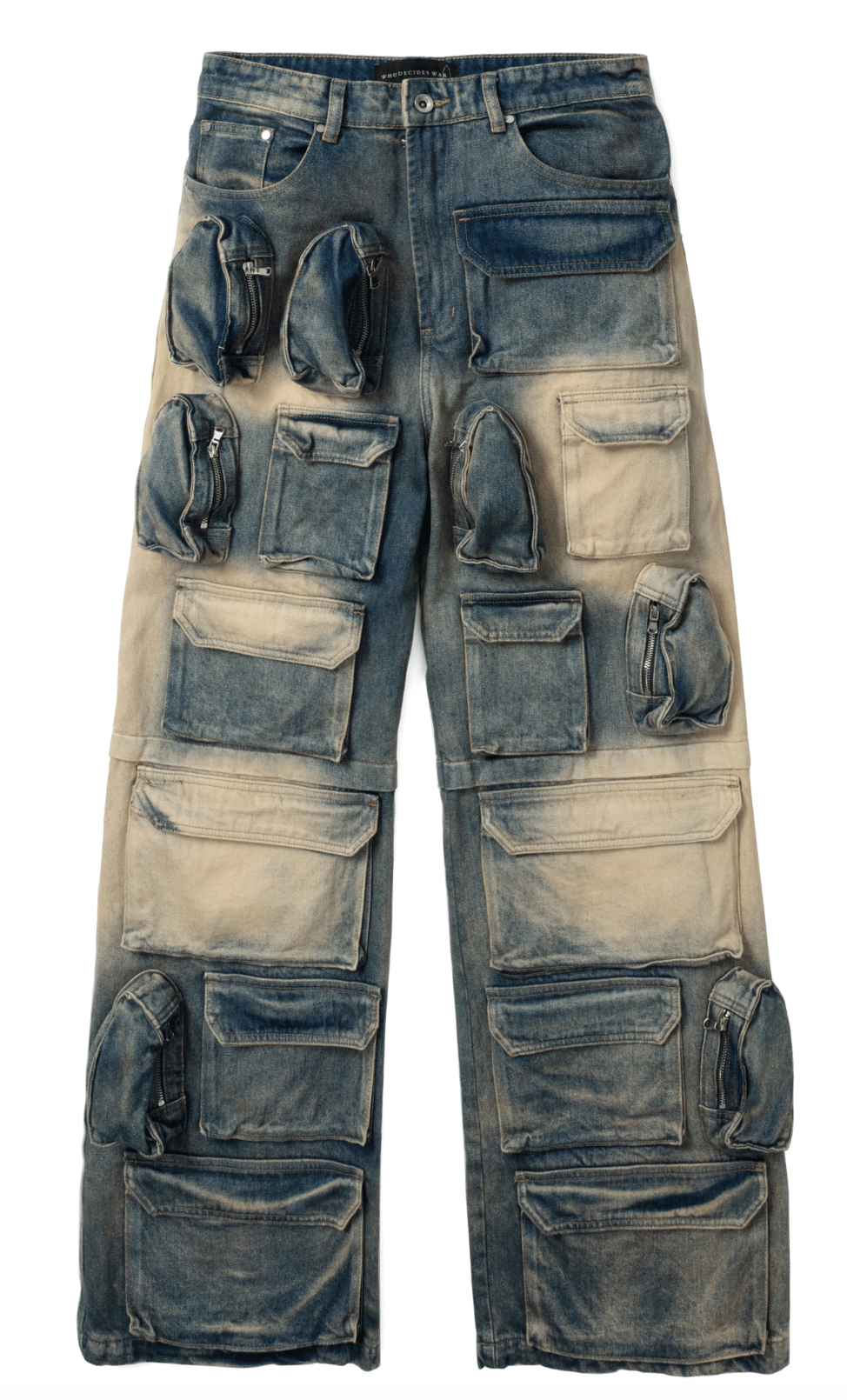 Who Decides War by MRDR BRVDO Rave Cargo Pants Tan Dark Wash