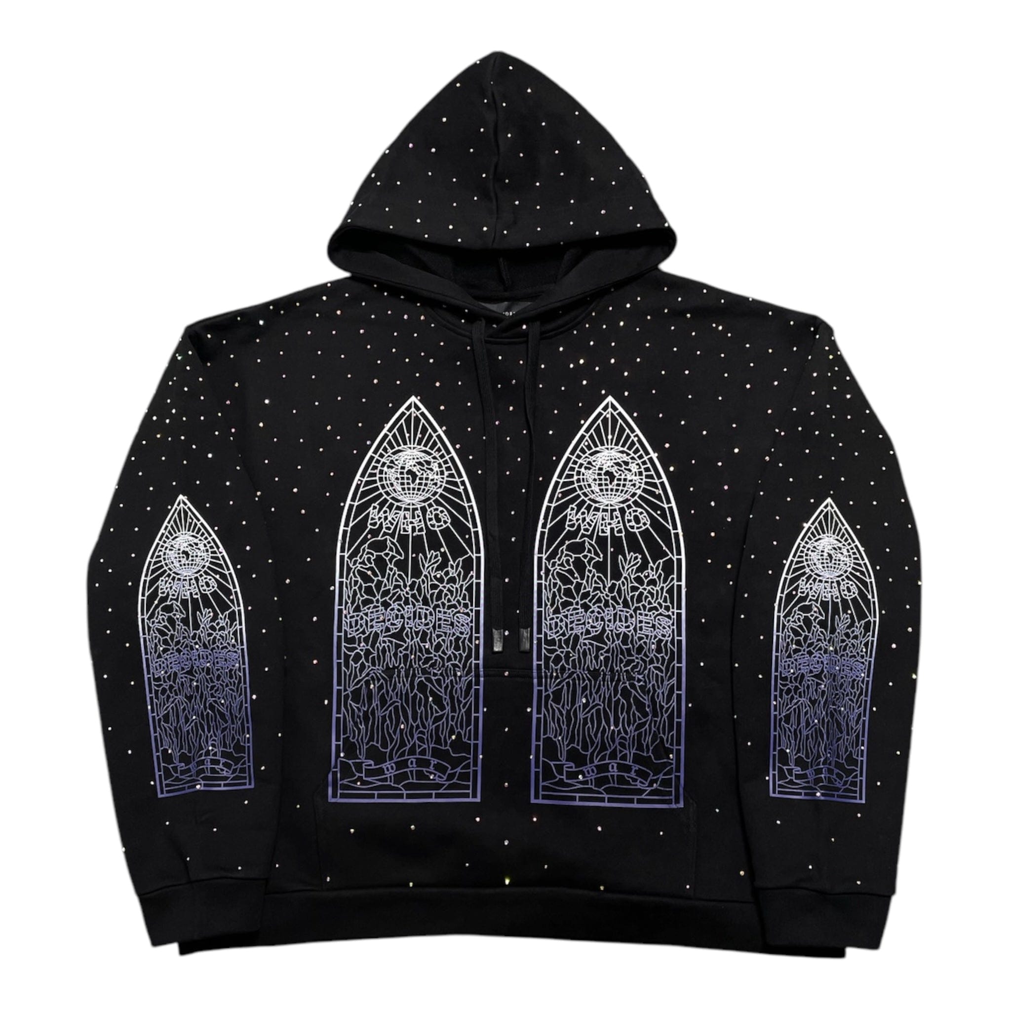 Who Decides War by MRDR BRVDO Rhinestone Hooded Sweatshirt Coal