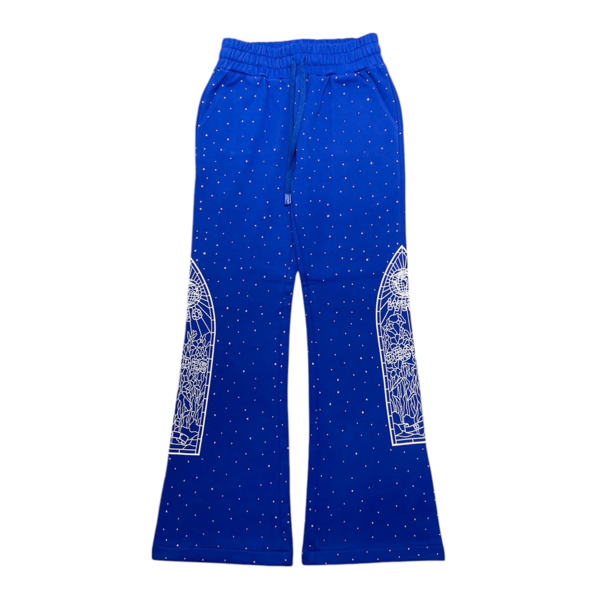 Who Decides War by MRDR BRVDO Rhinestone Sweatpants Indigo