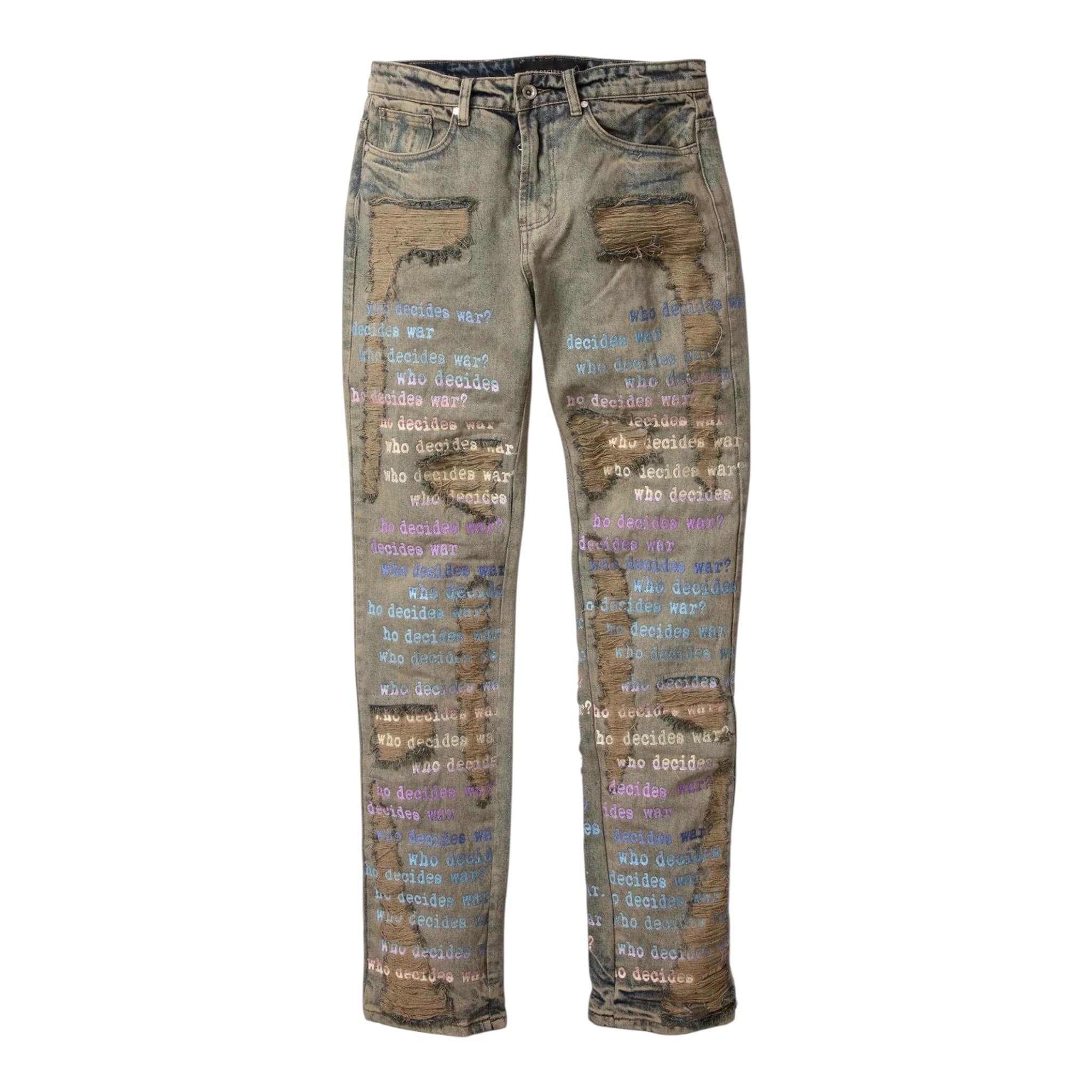 Who Decides War by MRDR BRVDO Scripture Jeans Blue Sand
