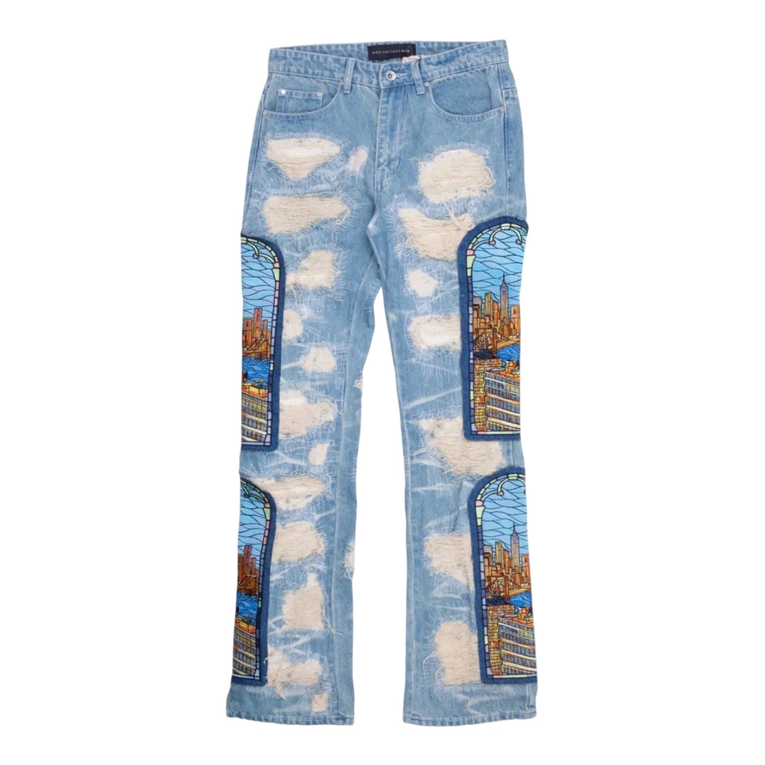 Who Decides War by MRDR BRVDO Stained Glass Jeans Indigo Multi
