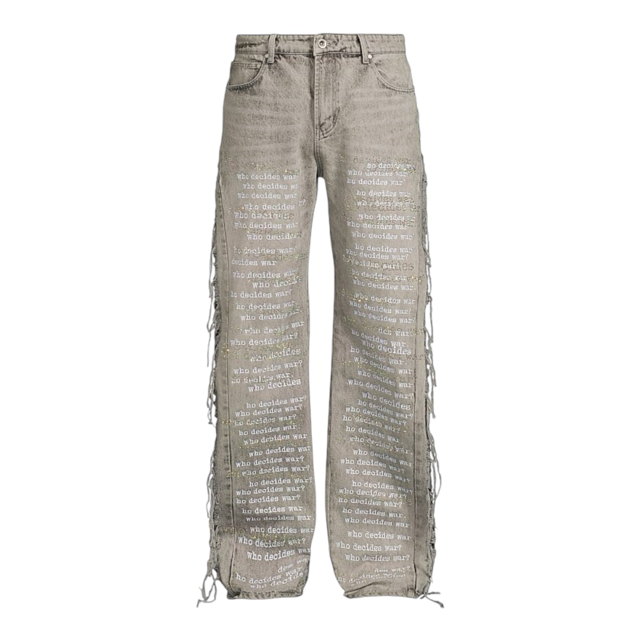 Who Decides War by MRDR BRVDO Ultraflare Crystal Scripture Denim Jeans Grey