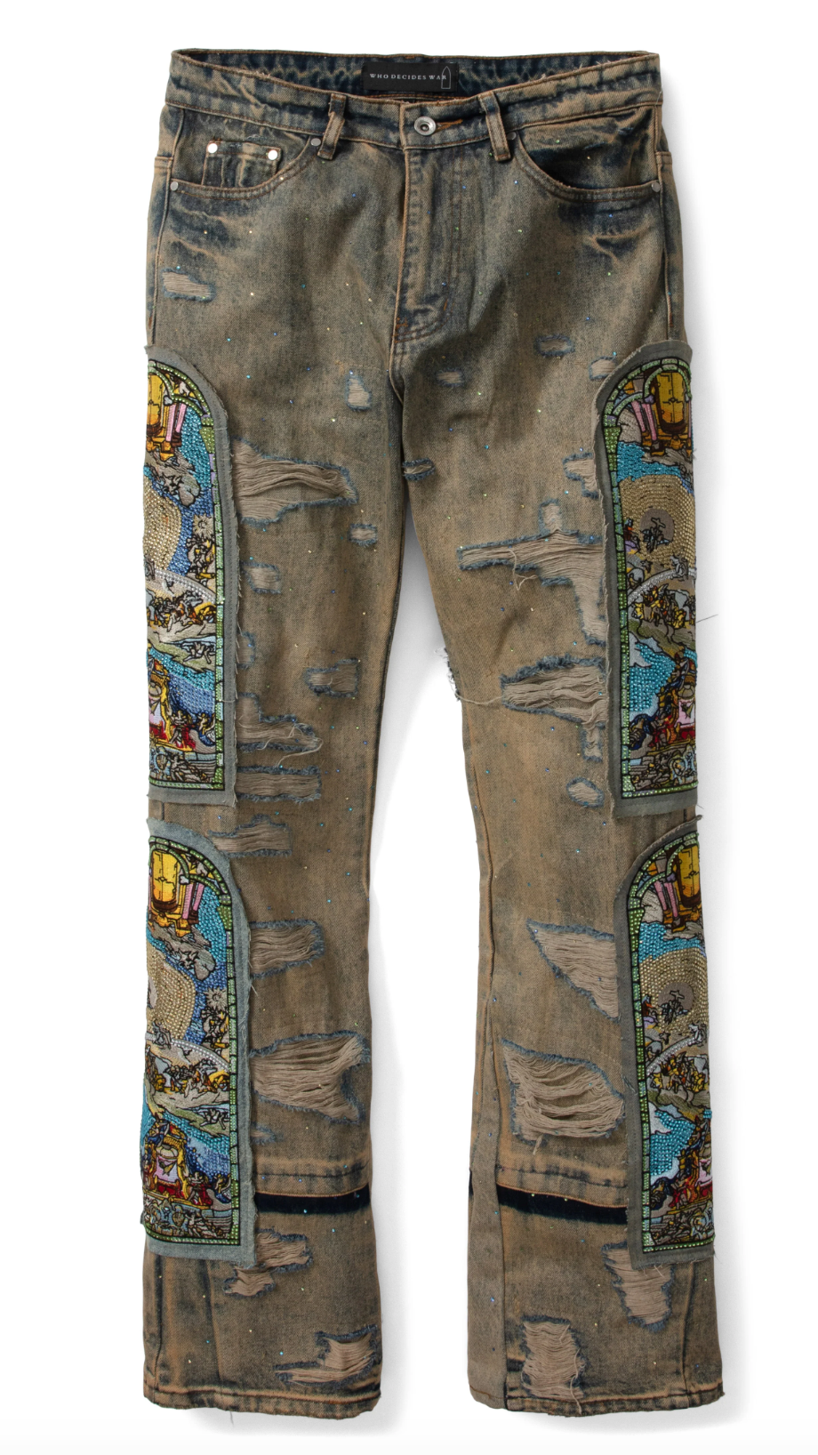 Who Decides War by MRDR BRVDO Unfurled Crystal Jeans Indigo Multi