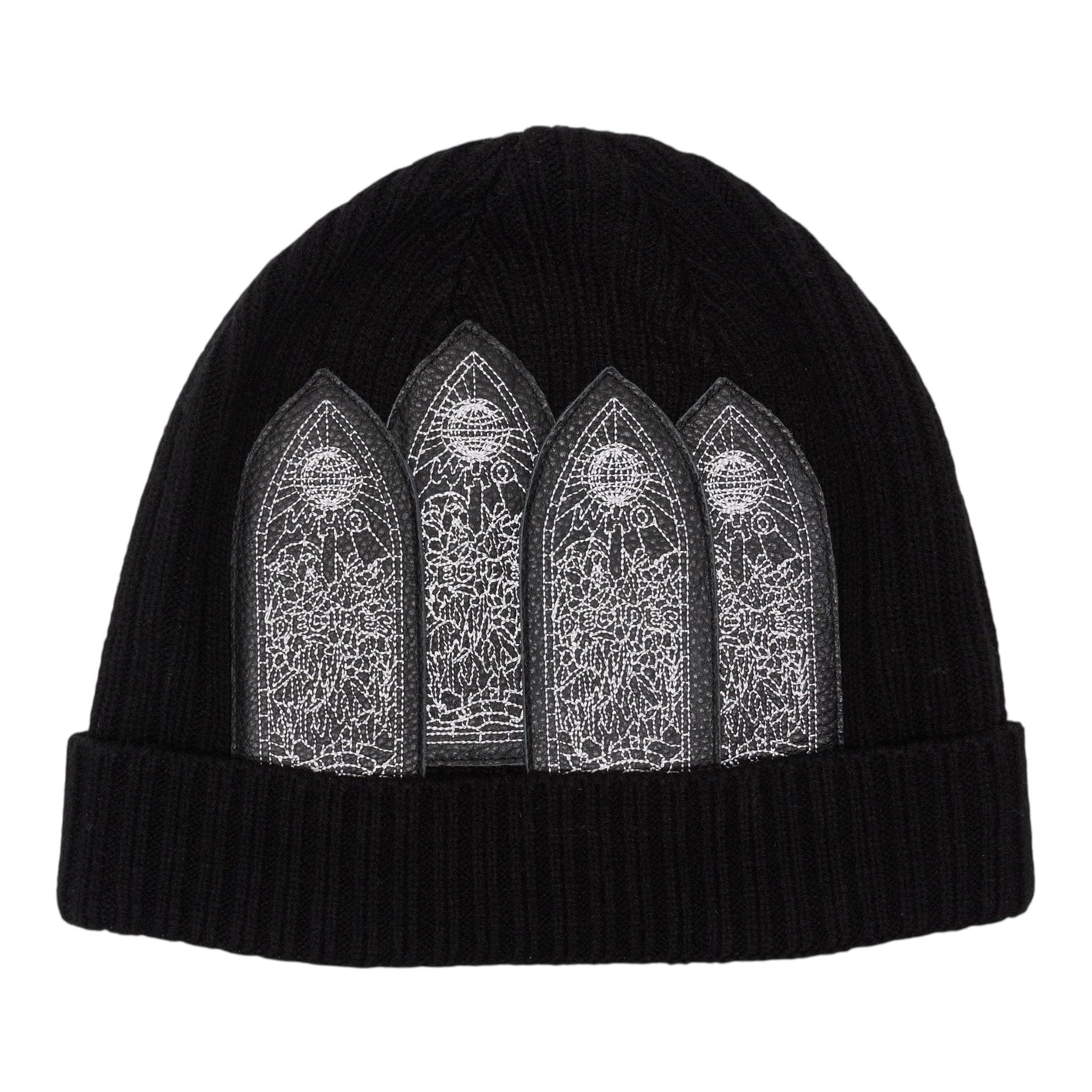 Who Decides War By MRDR BRVDO Leather Window Patch Beanie Black White