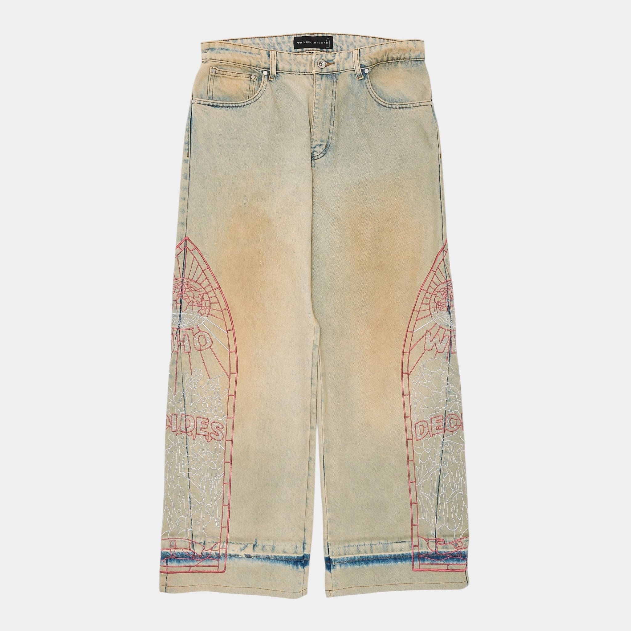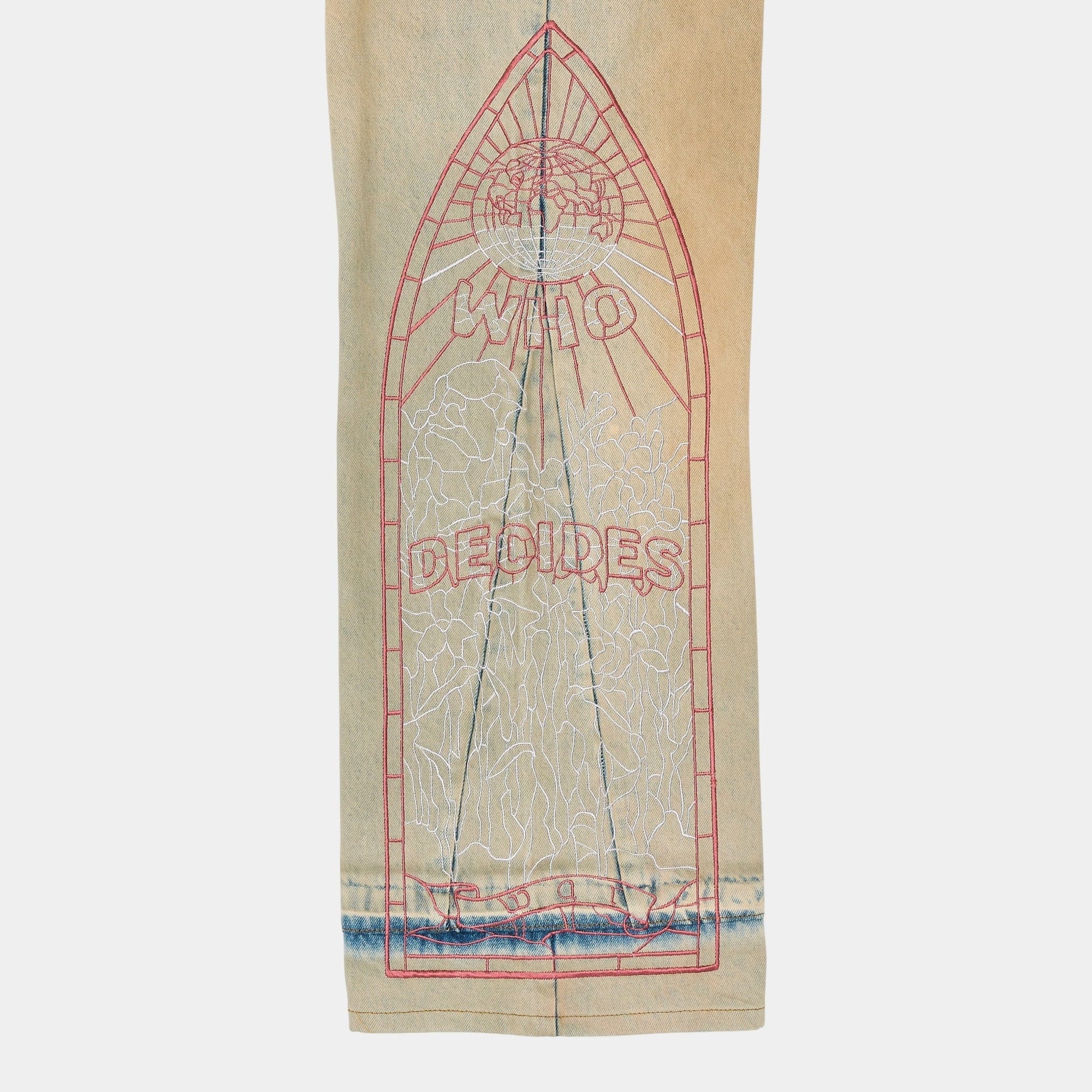 Who Decides War Extended Hem Embroidered Jeans Dirty Indigo