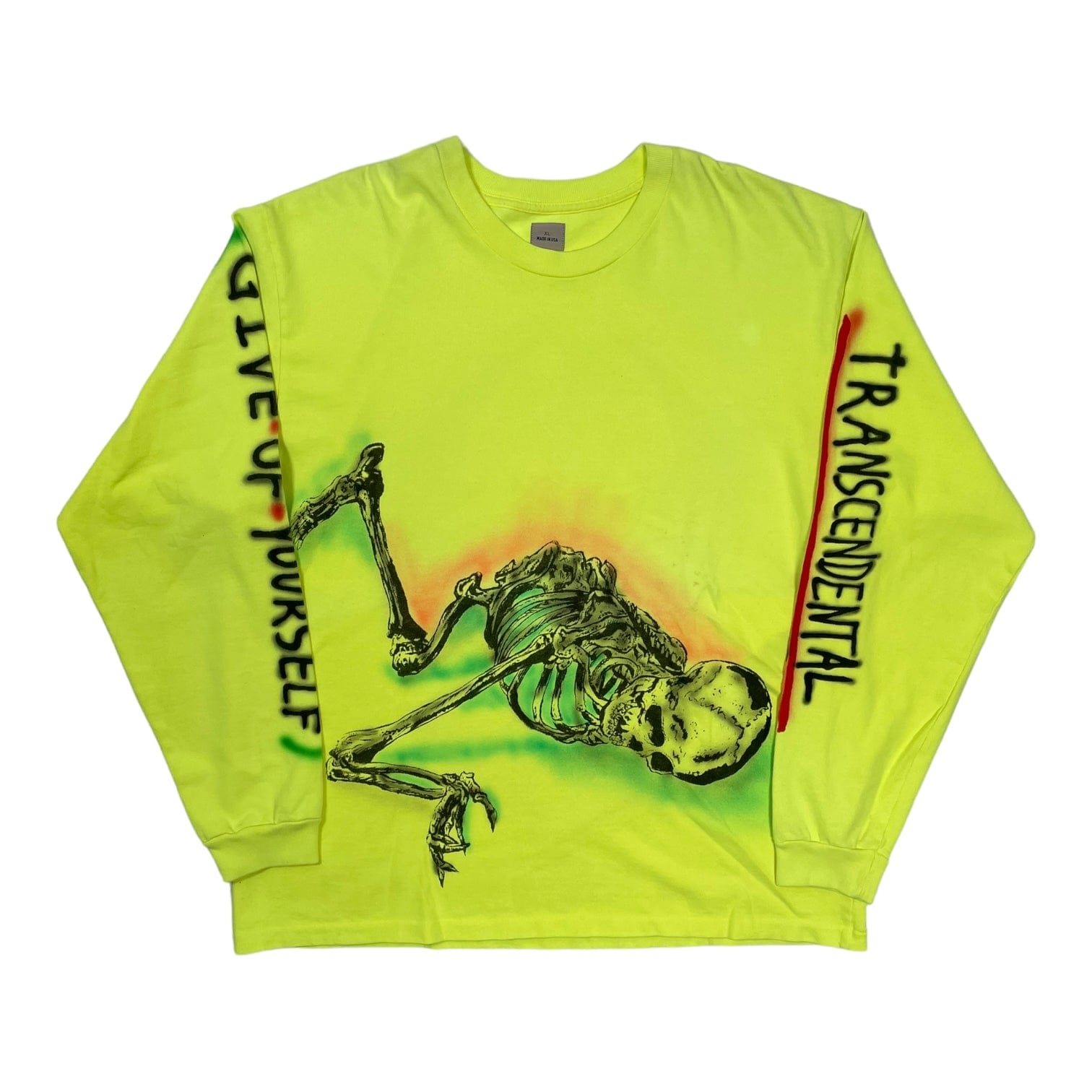Origins NYC offers this pre-owned Yeezy Wes Lang Skeleton Long Sleeve Tee Shirt in Neon Green.