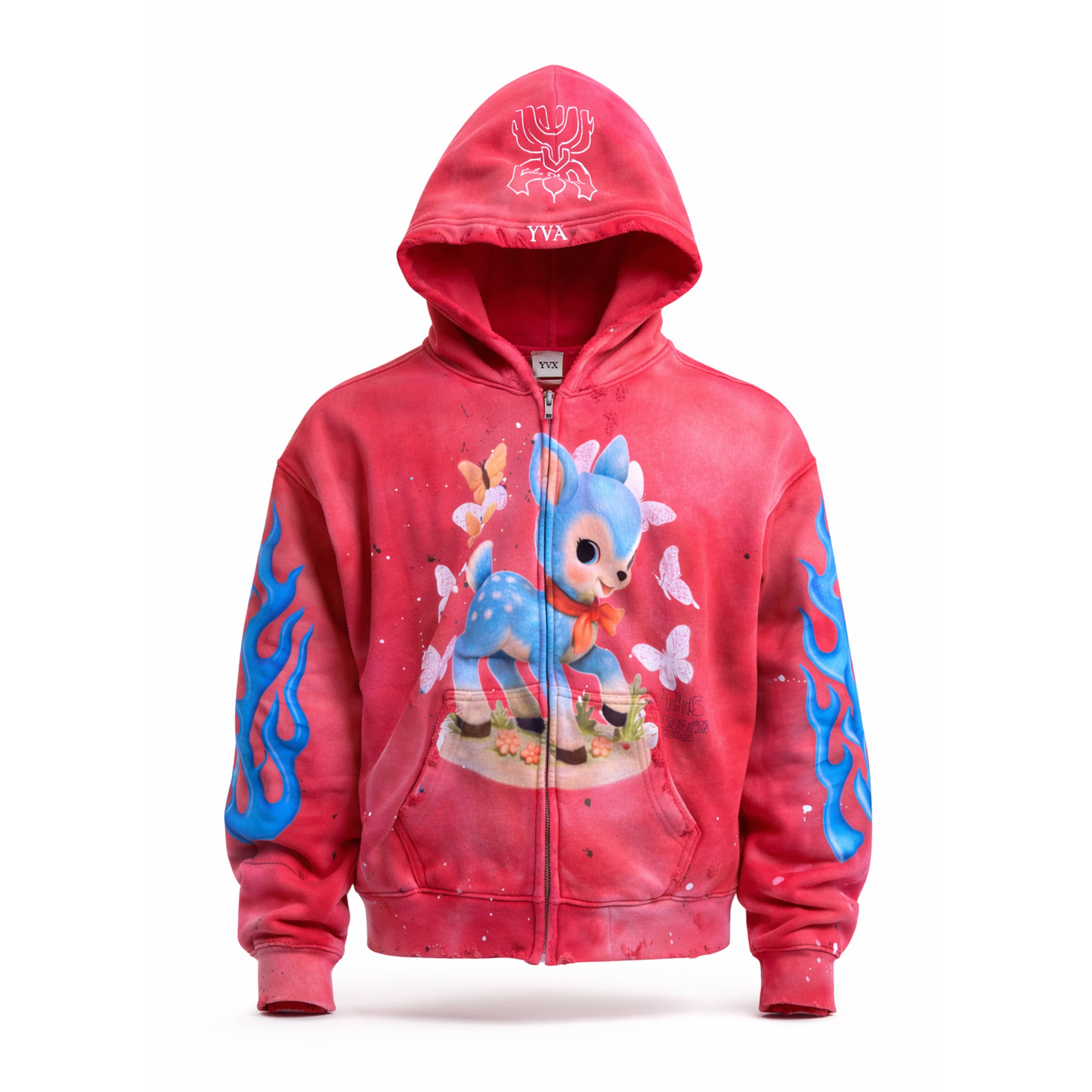 Enfants Riches Déprimés Madonna Assemblage Zip Up Hooded Sweatshirt Washed Black White