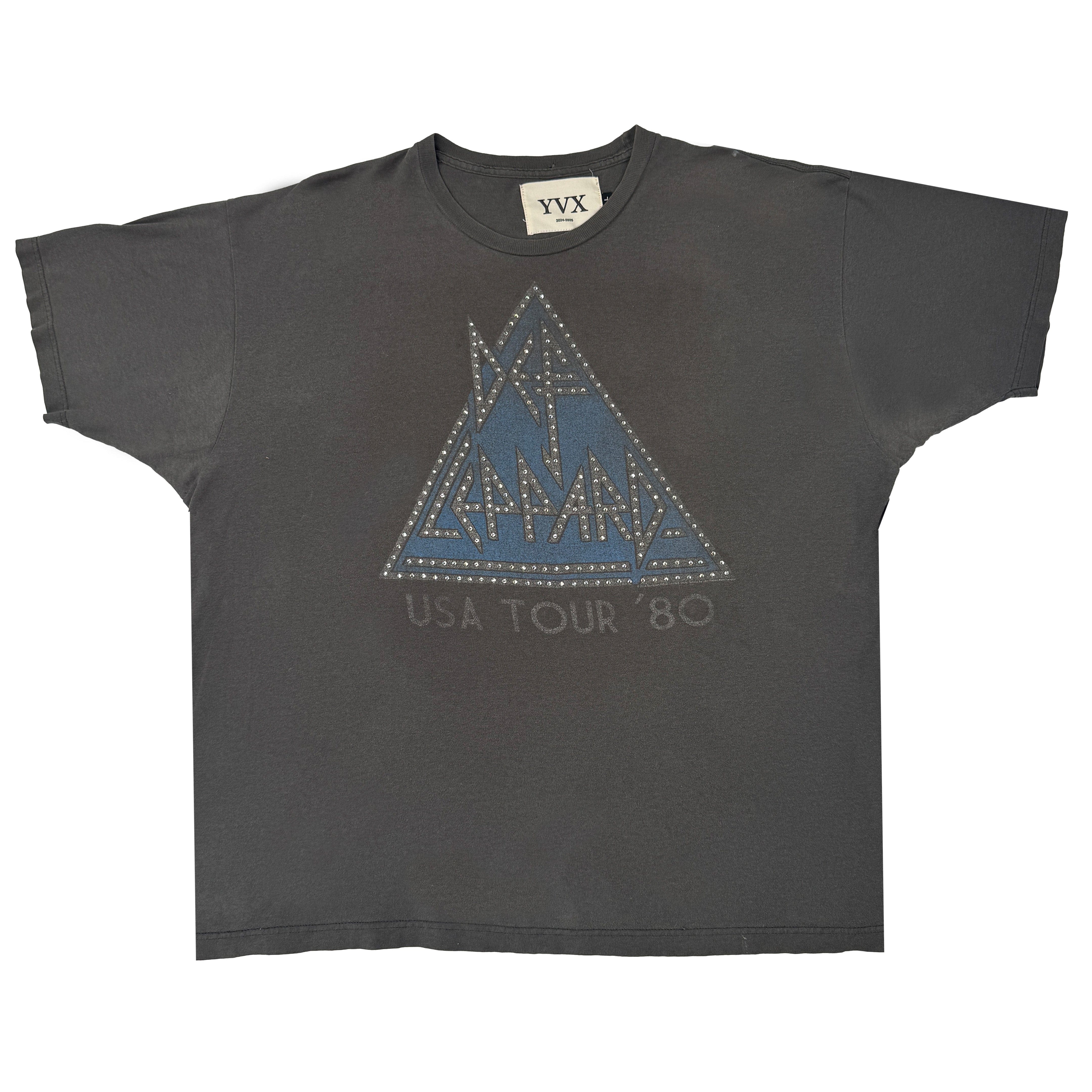 YVX Reworked Vintage Def Leopard Short Sleeve Tee Shirt Grey
