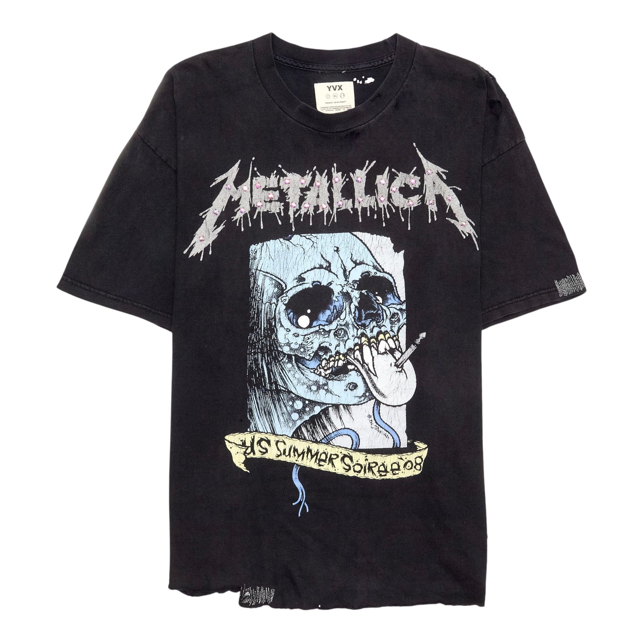 YVX Rhinestone Studded Metallica Summer Soirée 2008 Logo Vintage Short Sleeve Tee Shirt Black Multi
